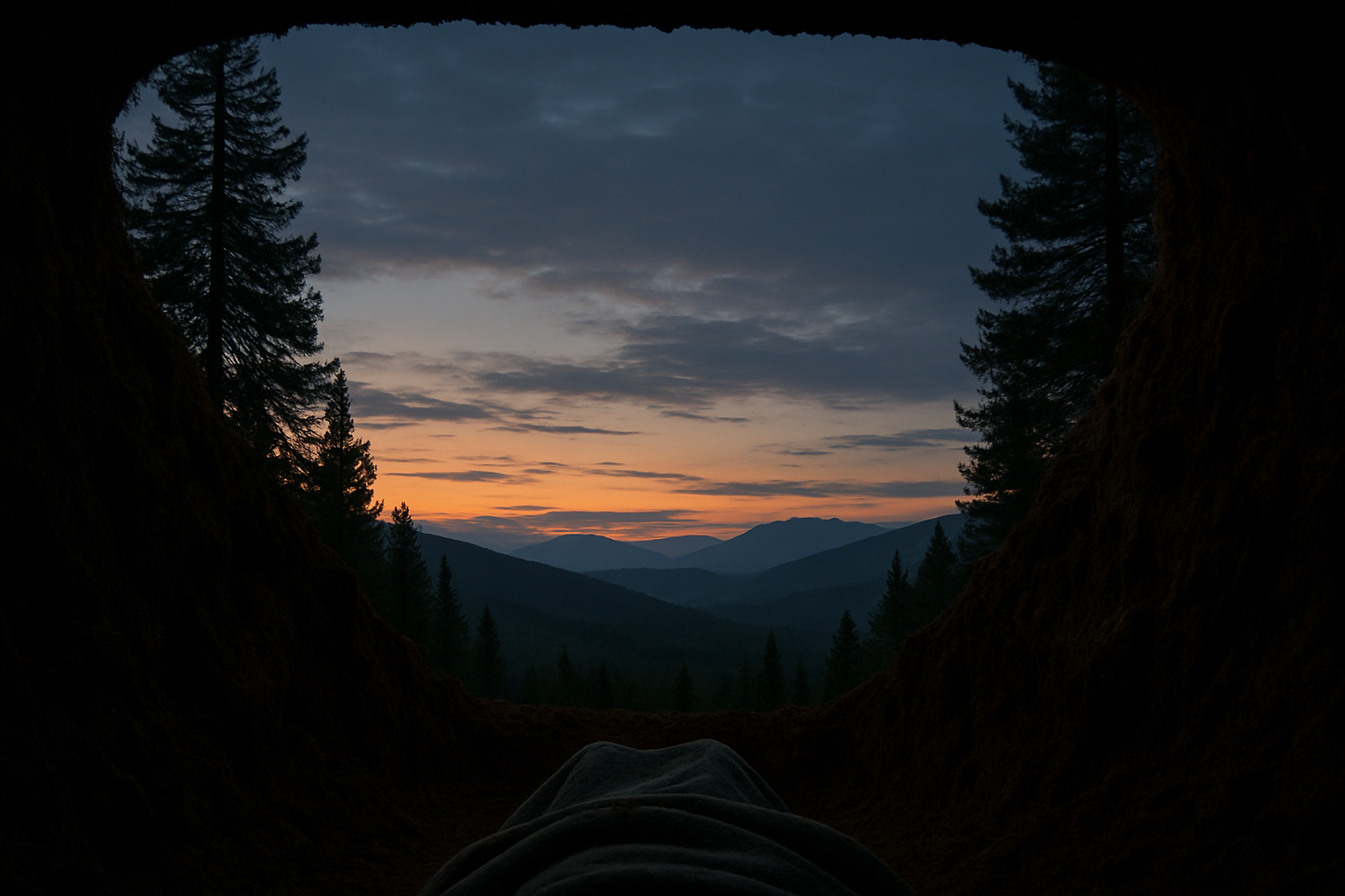 I lowered myself into the hole I'd dug hours before. Earth walls rose around me. Above, a rectangle of darkening sky. I pulled the blanket over my body and lay still.